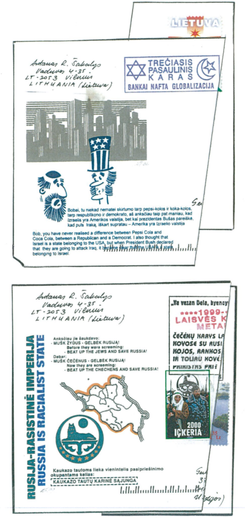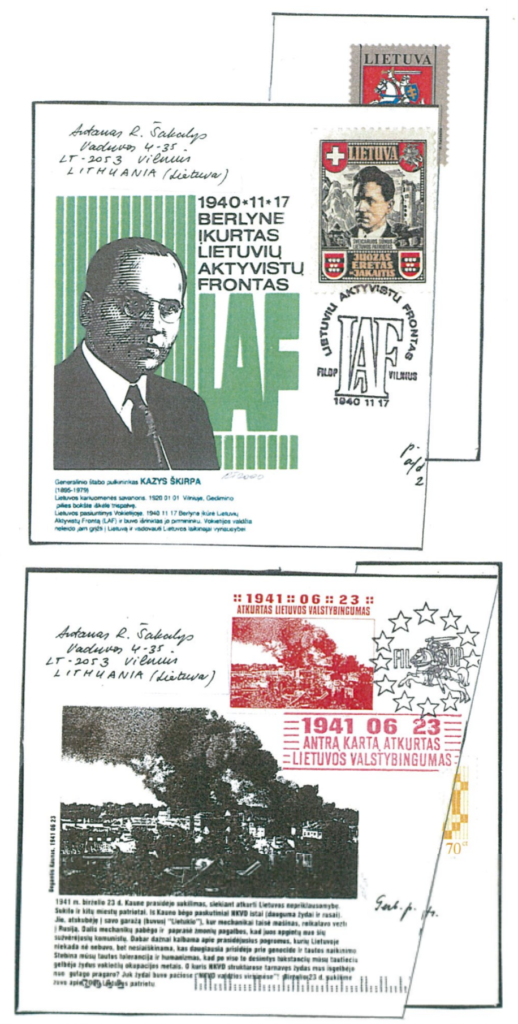 Antano R. Šakalio sukurti suvenyriniai vokai. Nuotraukos iš Rimanto Kunčo-Žemaitaičio kolekcijos:
